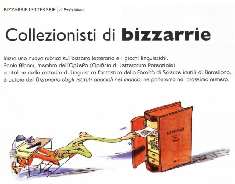 rubrica ci occuperemo di bizzarrie letterarie, ovvero di stramberie, di