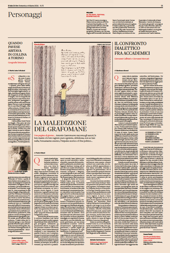 «Domenica - Il Sole 24 Ore», N. 73, 15 marzo 2026, p. IX. Per la versione in pdf di questo racconto cliccate qui. ![]() Per andare o ritornare al menu delle mie collaborazioni alla «Domenica de Il Sole 24 Ore» cliccate qui. HOME PAGE TèCHNE RACCONTI POESIA VISIVA |