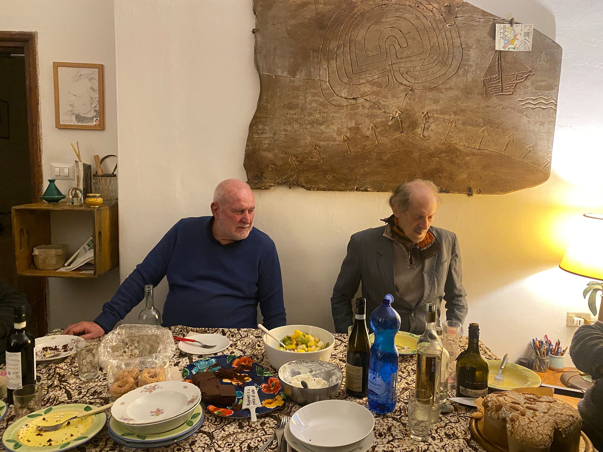 INCONTRI RAVVICINATI DI NON SO QUALE TIPO Gli "incontri" avvenuti a partire dall'anno 2022 ________________________________________ ![]() Con Ermanno Cavazzoni, a casa di Giovanni Maccari, a cena dopo la presentazione a Testo [come si diventa un libro], Stazione Leopolda di Firenze, del libro di Cavazzoni, Storia di un'amicizia (Quodlibet Compagnia Extra 2026). Quasi 160 anni in due, non faccio per dire... 28 febbraio 2026. Foto di Serena Botti ![]() Sono entrato dentro una ceramica smaltata di Giuliano Della Casa durante una visita alla sua mostra Domicilio dell'alfabeto, Galleria Mazzoli di Modena, via Nazario Sauro n. 62, dall'11 ottobre al 22 novembre 2025. Autoscatto Foto di gruppo all'inaugurazione del monumento a Ernesto Che Guevara a Carrara, scalinata del Baluardo, venerdì 31 gennaio 2025, alle ore 11:00. La statua, opera dell’artista argentino Jorge Romeo, realizzata in marmo bianco di Carrara, alta 2,15 metri, ha in cima un ritratto metallico del Che. Da sinistra: Mario Cione, Liliana Bottai, io medesimo, Elisabetta Antonelli e Beniamino Bombardieri. Foto scattata da Beppe Premoli sotto il monumento a Francesco Baracca venerdì 17 gennaio 2025. ![]() A sinistra Afro Somenzari, patafisico, scrittore, artista, polemista, fondatore di FUOCOfuochino, la casa editrice più povera del mondo. Qui siamo davanti allo Stand 19 della casa editrice, a Palazzo Ducale di Sabbioneta (Mn), durante Libri tra le mura. Festival della Piccola Editoria indipendente e digitale nazionale. L'8 settembre 2024. Foto scattata su richiesta da una giovane autrice di FUOCOfuochino ![]() Insieme all'amico Joshua Babic, scrittore e oplepiano, nel parco Ciani a Lugano, davanti alla statua di Socrate che dorme, il giorno martedì 18 giugno 2024. selfie Foto scattata il 25 maggio 2024 durante una visita al Museo Guatelli, in località Ozzano Taro Collecchio (PR), da una fotografa d'eccezione: Alessandra Urbani. ________________________________________ ![]() Questa foto, intitolata Abbiocco, dedicata a Monica Schettino, è stata scattata al ristorante La Riva di Marina di Pisa, sabato 16 marzo 2024 verso le 14. foto di Paolo Pergola ________________________________________ Foto scattata in occasione della presentazione del Manualetto per la prossima vita di Ermanno Cavazzoni (Compagnia Extra Quodlibet 2024) durante la manifestazione Testo [come si diventa libro], edizione 2024, nel giardinetto del bar adiacente alla Stazione Leopolda di Firenze, domenica 25 febbraio 2024, nel pomeriggio. Da sinistra: Giovanni Maccari, Graziano Graziani, Ermanno Cavazzoni, io medesimo e Dino Baldi. foto Elena Zucconi ________________________________________ ![]() Conferenza tenuta a fino anno 2023 nella sede forlinese dell'Associazione Internazionale Il'ja Il'ič Oblómov. Martedì 2 gennaio 2024 (foto Ansa). ________________________________________ ![]() Da sinistra: Maria Sebregondi, Paolo Pergola, Luigi Serafini e me medesimo. Foto scatta durante la manifestazione ALINGUE E APOSTROFI. Festival degli Universi Supplementari e dei Nuovi (A)linguaggi, per celebrare 150 anni + 1 dell'Era Patafisica e altre soluzioni immaginarie, evento organizzato da Marco Garophalo e Duccio Scheggi presso la Stecca 3 di Milano dall'8 al 10 settembre 2023. Foto Marco Garophalo ________________________________________ Foto di gruppo scattata in occasione di una cena all'Albergo del Po di Boretto (Reggio Emilia) dopo una visita alla mostra di Luigi Ghirri I sassi di Pollicino al Palazzo Ducale a Guastalla e prima di una visita alla Casa Museo Pietro Ghizzardi a Boretto. Da sinistra in piedi: Gloria Negrini, un'amica di Monica Schettino, Antonia Paolini, Marta Zucconi, Barbara, Afro Somenzari, Monica Schettino, io medesimo, il maledetto Alessandro Trasciatti. Da sinistra seduti e accovacciati: Jacopo Narros, Elena Zucconi, Gino Ruozzi. sabato 28 ottobre 2023 foto di un cameriere del ristorante ________________________________________ ![]() Il mio incontro con l'azzurrità del cielo e con il panorama della Garfagnana, a Careggine (Lucca), seduto su una panchina gigante dell'artista Chris Bangle (1956), designer statunitense attivo nel settore delle automobili, martedì 2 agosto 2023, verso le 14. Foto Elena Zucconi ________________________________________ ![]() Con la poetessa Wisława Szymborska Foto scattata alla mostra Wisława Szymborska. La Gioia di scrivere, a cura di Sergio Maifredi, Museo d'Arte Contemporanea di Villa Croce Via Jacopo Ruffini, 9, Genova Venerdì 7 luglio 2023. Foto Ada De Pirro ________________________________________ ![]() La rivoluzione in movimento. La manifestazione antifascista a Firenze. Sono con Beniamino Bombardieri e Elisabetta Antonelli, carissimi amici. Sabato 4 aprile 2023. Foto Luca Bombardieri ________________________________________ ![]() L'incontro (illusorio) con Maurits Cornelis Escher, alla mostra dell'artista olandese presso il Museo degli Innocenti di Firenze, martedì mattina 9 gennaio 2023. selfie _____________________________________ L'incontro con (il ritratto di) Carlo Dossi, eseguito da Tranquillo Cremona, 1867, esposto alla mostra Milano. Da romantica a scapigliata, curata da Elisabetta Chiodini, al Castello Visconteo Sforzesco di Novara, martedì 27 dicembre 2022, nel pomeriggio. Foto di Paolo Pergola _____________________________________ Qui sotto le immagini di un mio pellegrinaggio insieme alla libraia Elena Zucconi sui luoghi dossiani fra sabato 9 e domenica 10 luglio 2022. ![]() Qui siamo a Corbetta (MI), casa di campagna di Carlo Dossi La biblioteca di Carlo Dossi Una sala con i reperti archeologici raccolti da Carlo Dossi Una rarissima immagine di Carlo Dossi seduto ai piedi di un sito archelogico in Grecia (secondo quanto mi dice un amico archeologo, si tratta dell'eretteo a Atene). ![]() Qui invece siamo all'imbocco del vialetto che porta alla Villa Dosso Pisani sul lago di Como. Notate che i capelli di Elena coprono la D di "DOSSO", rimane "OSSO", un involontario gioco di parole che for
