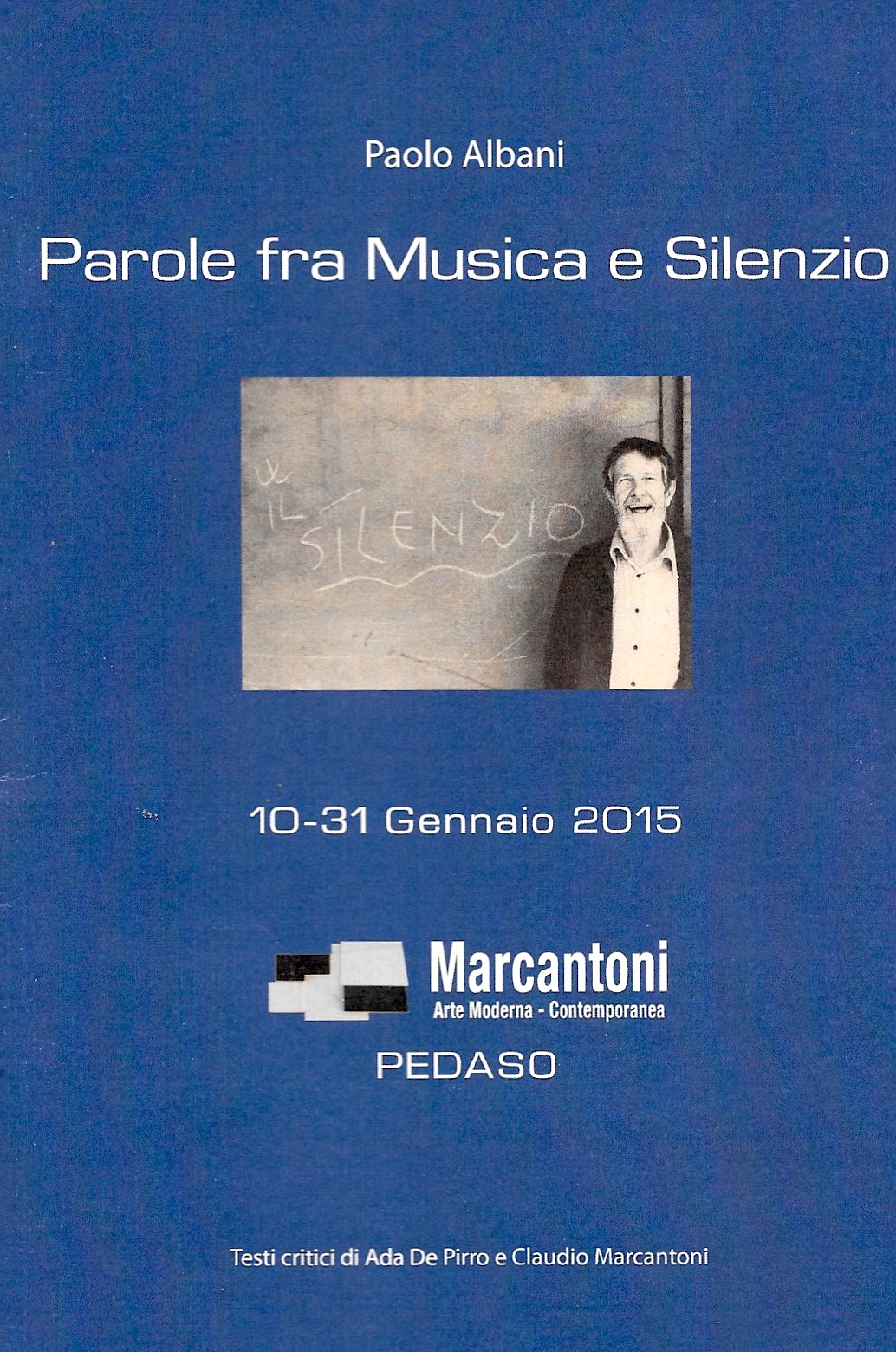 PAROLE FRA MUSICA E SILENZIO ![]() Galleria Marcantoni via Manzoni, 21h - Pedaso (Fermo) 10-31 gennaio 2015 Catalogo a cura della Galleria Marcantoni testi critici di Ada De Pirro e Claudio Marcantoni Alcune opere in mostra: ![]() ACCORDO IN BE MOLLE, 2003 chiave di sol, simbolo di be molle, molle e tondini metallici su tavoletta di legno cm70x100) ![]() VISUALIZZAZIONE DEL TEMPO DI ASCOLTO DI 4’ 33’ DI JOHN CAGE (OMAGGIO A G.P. TORRICELLI), 2012 pannello con scritte cm70x100 ![]() OMAGGIO A RAVEL, 2005 spartiti su tela cm40x70 ![]() CENTRALITÀ DEL SILENZIO NELLA STANZA DI PROUST, 1990 sugheri su tavoletta di legno cm100xcm70 REBUS MUSICALE (6, 2, 7), 2014 chiave, calendarietto, colino da tè e lettere adesive cm60x40 ![]() CARTEGGIARE CALLIDO E ACCORTO, 1998 disco per carteggiare su tavoletta di legno cm 45x45 GEOMETRIA DEL SUONO, 1985 nastri di registrazione cm 45x44x4 ____________________________________ ![]() ____________________________________ Per vedere tutte le mie opere in mostra (pdf) cliccate qui. Per vedere il Catalogo digitale (ISSUU) della mostra cliccate qui. Per vedere il video che ho girato sulla mostra cliccate qui. _____________________________________