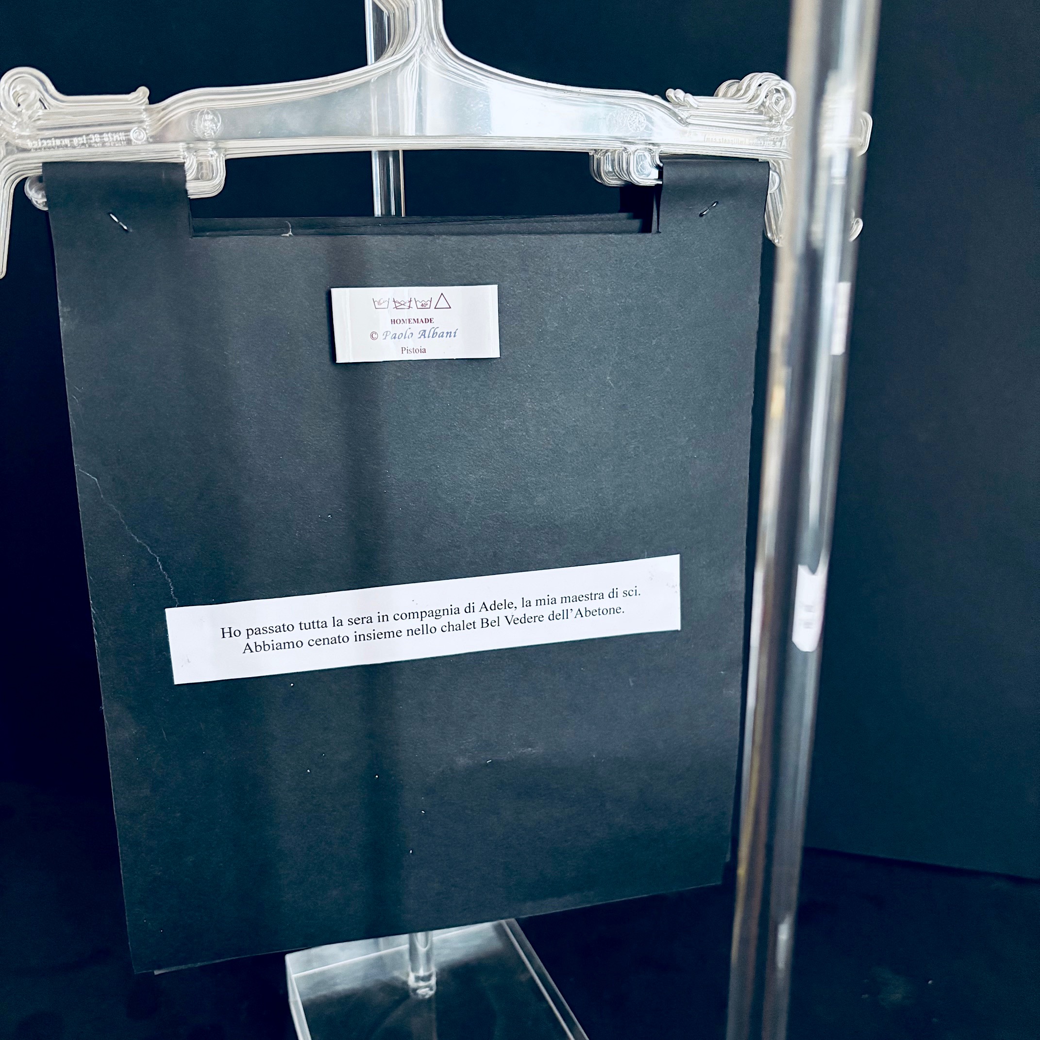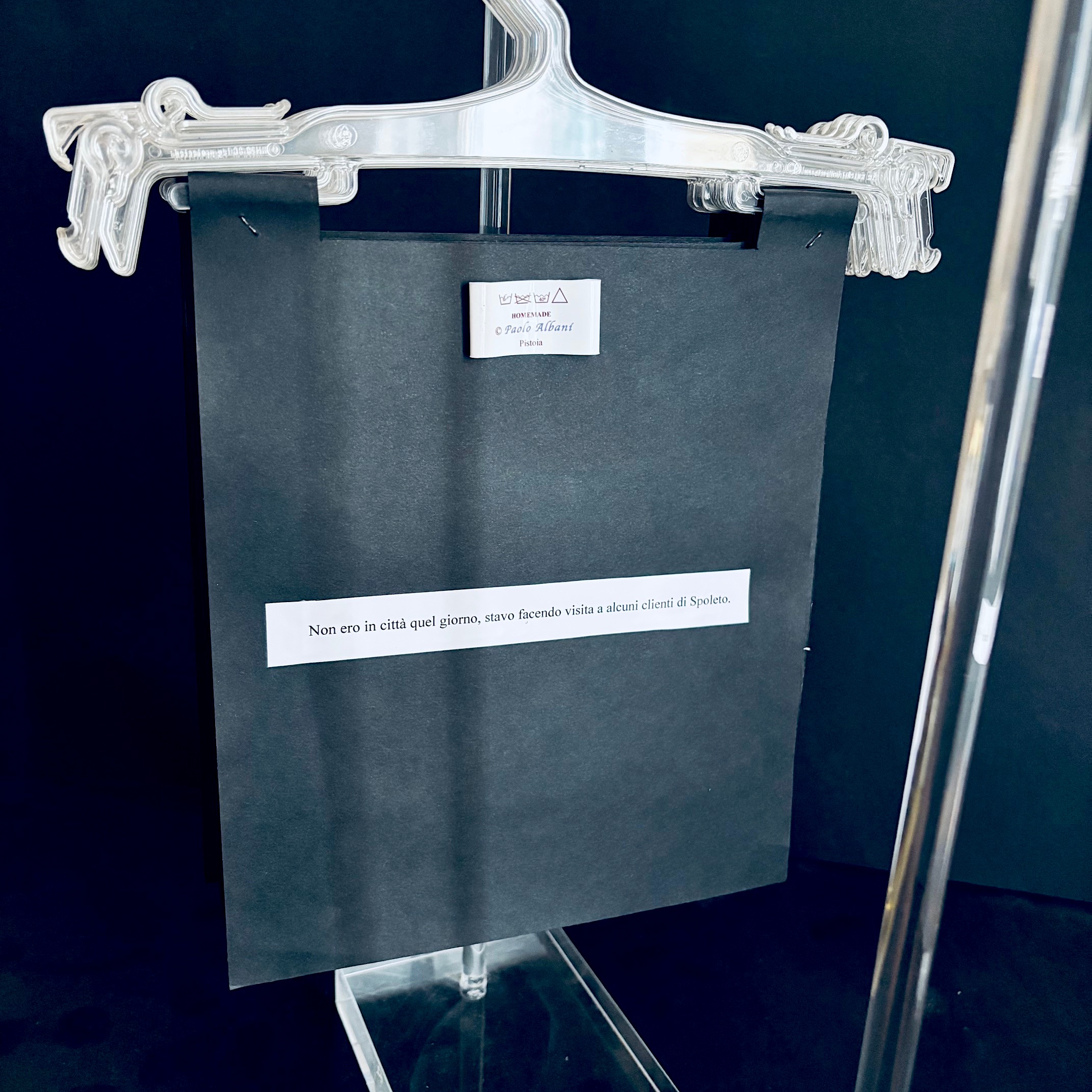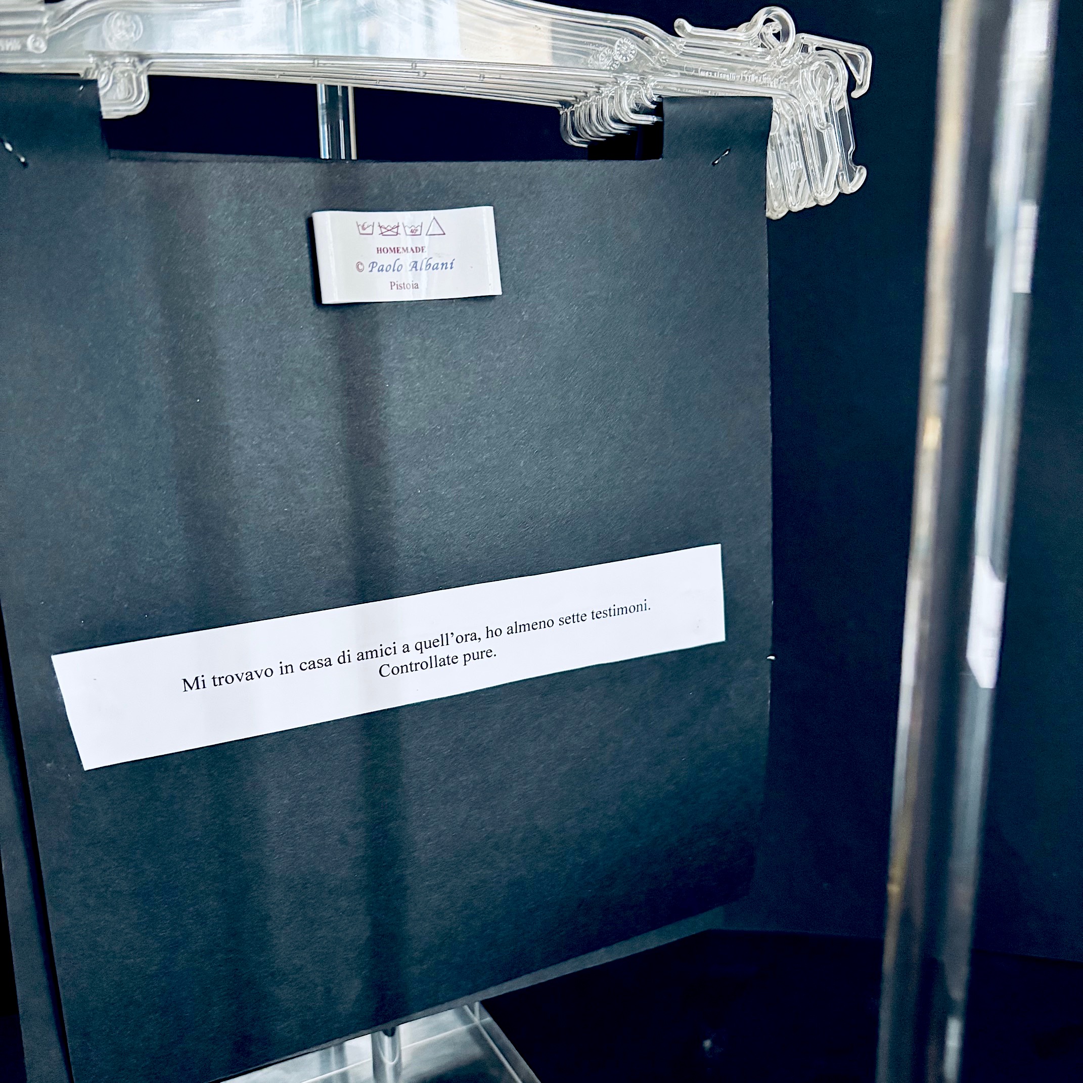E PATA-ARCHIVI a cura di Duccio Scheggi, con gli interventi di Anna Busetto Vicari e Afro Somenzari Biblioteca San Giorgio Pistoia dal 9 gennaio al 7 febbraio 2026 Per leggere un testo introduttivo di Duccio Scheggi alla mostra cliccate qui. ________________________ In mostra ci sono tre miei libri d'artista: Paolo Albani, Ahhhhhhhhhhhhhhhhhhhhhh! Romanzo gotico, 2018-2026 fogli con punte sui bordi e testo cm 14x10,5x3 Esemplare unico Il testo nella "quarta di copertina" dice: Il vecchio libro inglese vide la creatura mostruosa e si spaventò così tanto che a tutte le sue pagine si drizzarono di colpo il margine sinistro e quello destro, il margine superiore e quello inferiore... Paolo Albani, Colli. Omaggio a Amedeo Modigliani, 2016 libro lungo rilegato cm. 66x8,7x2,2 Paolo Albani, Libro noir con appendi-alibi, 2017 struttura in plexiglass, fogli neri con scritte bianche e grucce di plastica cm. 30x44x28 ![]() ![]() ![]() HOME PAGE TèCHNE RACCONTI POESIA VISIVA |