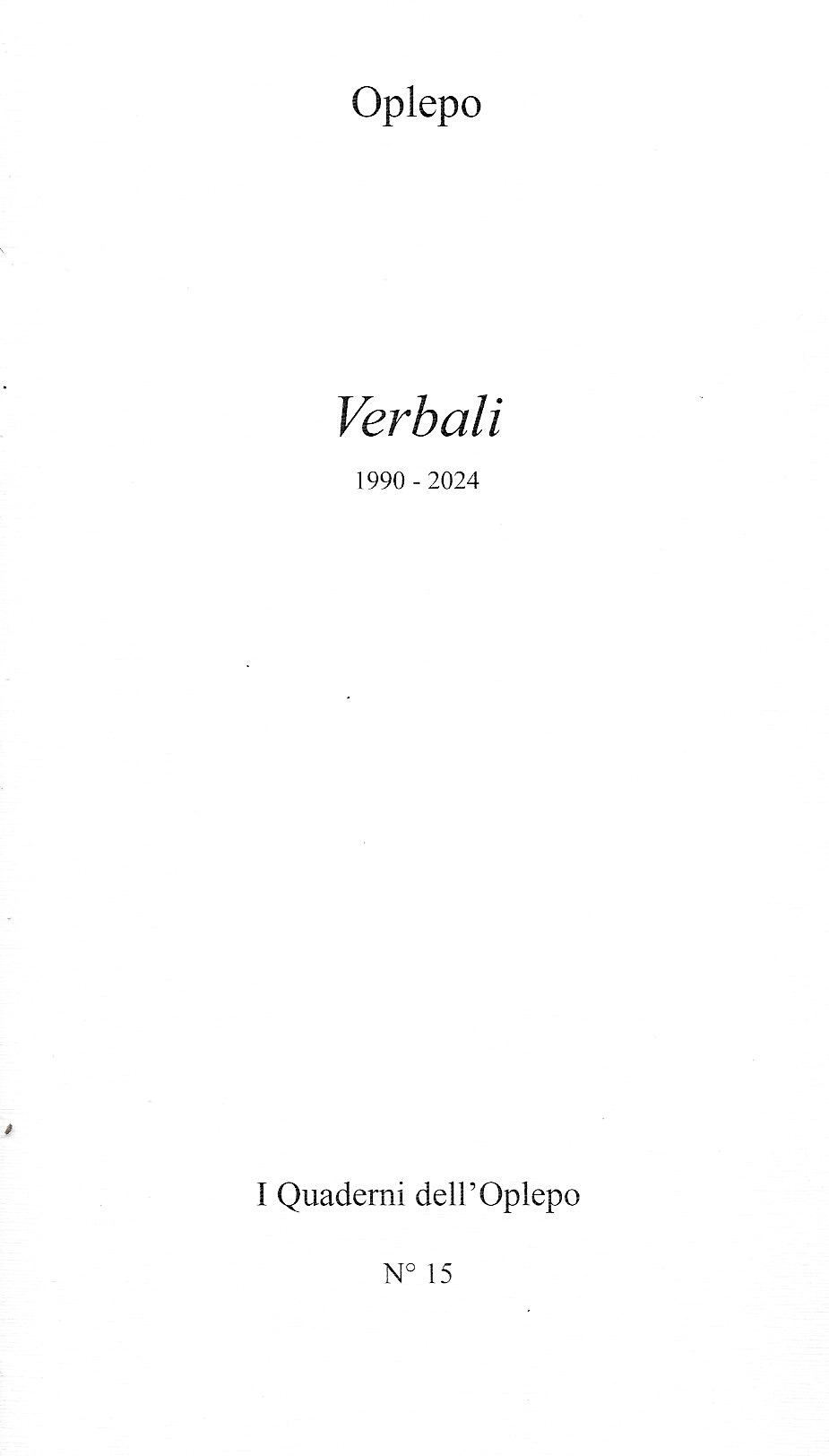 VERBALI 1990-2024 I Quaderni dell'Oplepo N° 15 (2025) ![]() Il quaderno raccoglie i verbali delle riunioni dell'Opificio di Letteratura Potenziale dalla sua fondazione (1990) al 2024. Per leggere l'Atto Costitutivo dell'Oplepo siglato a Capri il 3 novembre 1990 nella Sala dell'Hotel "La Palma" basta cliccare qui. HOME PAGE TèCHNE RACCONTI POESIA VISIVA |